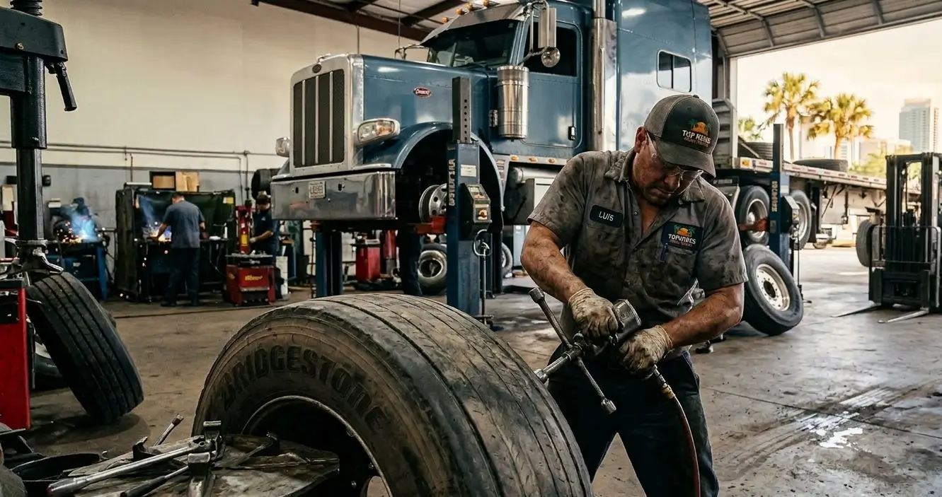 Tire issues don’t get better with time; they just get more expensive. Whether you’re passing through Orlando or this is your home base, pull into Top Rides Truck Repair. We’ll get you inspected, fixed, and back on the road before your coffee gets cold.